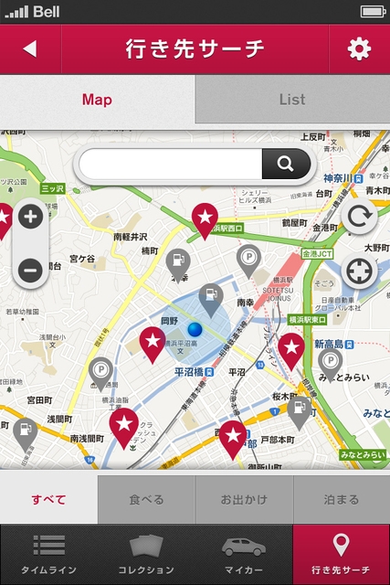 ドライブの行き先を探したり、行きたいスポットを「行き先車メール」で目的地として対応ナビに設定することも可能。特別なドライブの思い出をFacebookやTwitterでシェアすることもできます。