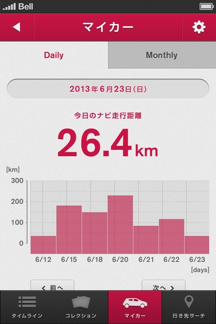対応ナビをお持ちの方は、ナビで取得した走行距離を見ることができます。