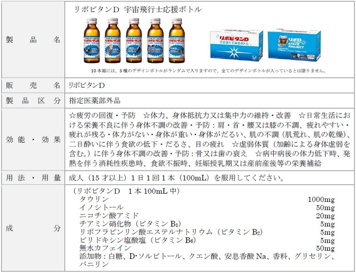 ファイト イッパーツ! “リポビタンD 宇宙飛行士応援ボトル”数量限定発売
