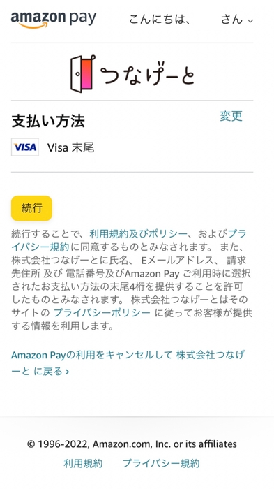 ■ つなげーと上でのAmazon Pay決済のご利用方法について