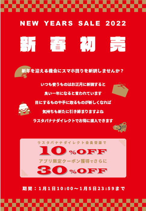 【最大37%OFF】ラスタバナナダイレクト新春初売セール開催!新年を迎える機会にスマホ回りを新調しませんか?