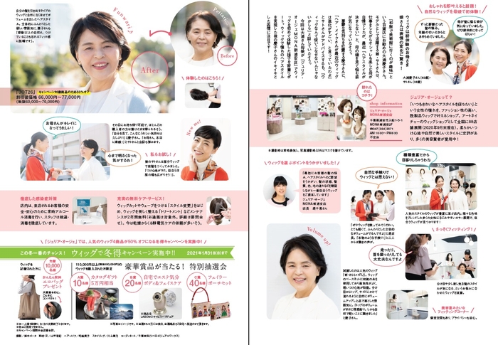 ウィッグショップ「ジュリア・オージェ」にて、ウィッグをご試着、またはご購入された方を対象に、さまざまな特典がもらえる『冬得キャンペーン』を実施中です。