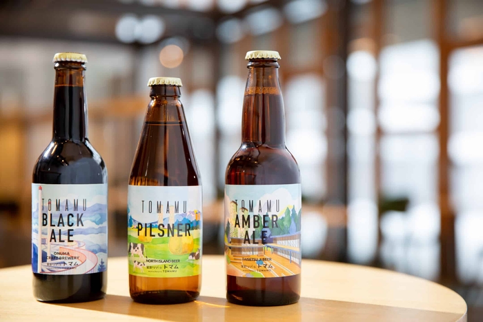 7種類のオリジナルフレーバーのとうきびに合わせて、北海道のクラフトビールメーカー3社と協力。ここでしか飲めないトマムオリジナルのクラフトビールを開発しました。ほとんどの行程を手作業で行う「ノースアイランドビール」や、地元で生産される原料を生かした「大雪地ビール」、天然のアルカリイオン水を使う「大沼ビール」とタッグを組みました。小規模な醸造所だからこそできる、とうきびに合わせて造ったクラフトビールです。とうきびの甘さや旨味に合わせて原材料を選択。各メーカーが得意とするスタイルで、クラフトビールの味を作り上げました。黄金色のピルスナー、琥珀色のアンバーエール、漆黒のブラックエールの3種類のクラフトビールが味わえます。