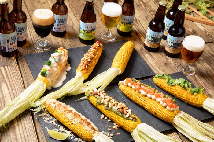 夏の日照時間が長く、昼と夜の寒暖差がある北海道では、とうきびが甘くて美味しくなるといわれています。また、その生産量は全国1位(*3)です。旬のとうきびを7種類のオリジナルフレーバーに仕上げて提供します。北海道に馴染み深い食材であるサーモン、バターやチーズなどを組み合わせてとうきびの甘さと旨味を引き立てます。夏に美味しくなる北海道ならではのとうきびとビールを思う存分堪能してほしいという想いから、とうきビアガーデンの開催に至りました。