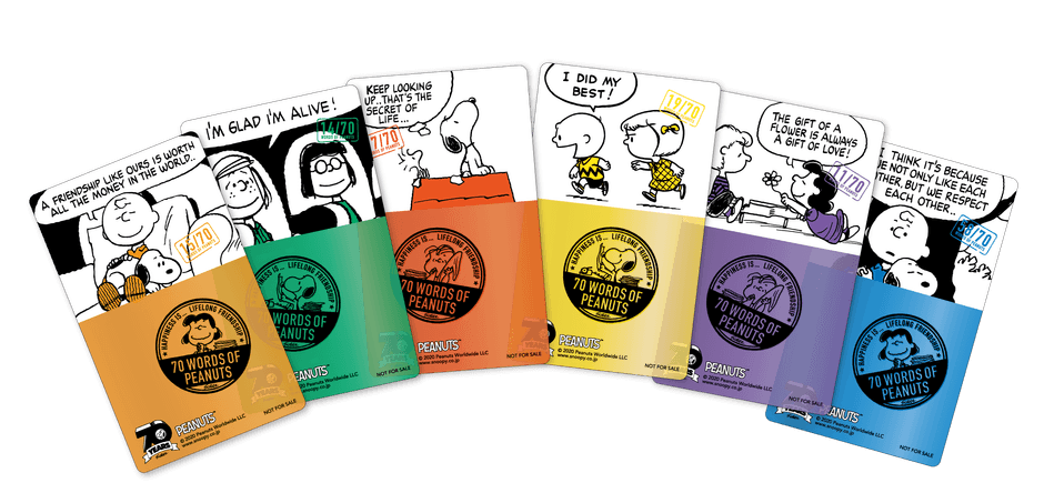 また、この記念流通キャンペーン全体を象徴し、それぞれのリテイラー様をつなぐ統一アイコンとして、同じく70周年の施策のひとつとして実施している「『70 WORDS OF PEANUTS』しあわせの味がする70粒のことば」をデザインしたブックマークを、ご用意いたしました。購入特典としてデザイン違いで何種類かずつを各リテイラー様に提供いたしますので、お客様には、いろいろなお店をめぐって、いろいろな個性のピーナッツ商品のおかいものを楽しんでいただくだけでなく、いろいろな「ピーナッツの言葉」にであっていただけます。