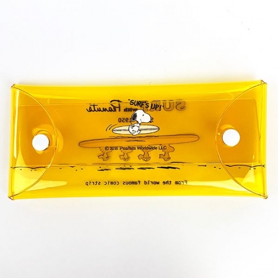 サーフボードを持った4匹のウッドストックのイラストのマルチケースは、使い勝手のいいアイテムのひとつ。