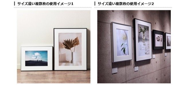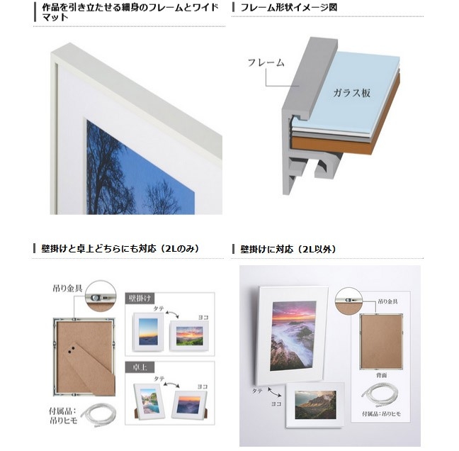 細身のフレームとワイドマットが作品を引き立たせる、展示会等に最適なアルミ製額縁です。