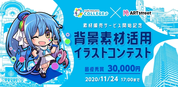 大日本印刷株式会社(DNP)の運営するオンライン学習サービス【FUN'S PROJECT COLLEGE】(https://college.funs-project.com/ )は、株式会社MediBangの運営するイラスト投稿サイト【ART street】(https://medibang.com/)でのイラスト素材の提供開始を記念し、背景素材活用イラストコンテストを10月9日(金)より開始しました。