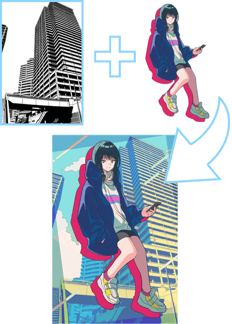 ご自身で描いたイラストと背景素材を組み合わせた作品を募集いたします。イラスト制作において自由度の高い部門です。