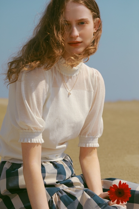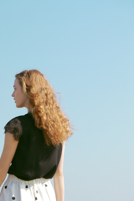 「Sequence ciel bleu」をシーズンテーマに、心躍る青空がどこまでも続くような、ワクワクとした気分で着たい最新のコレクションでは、夏の青い空に映えるカラーリネンドレスやマーメイドシルエットのコットンボイルスカート、大胆な柄でPOPさのあるボルカドットやブロックチェックのサマーブラックをメインにしたレディモノトーンスタイルなどを展開。