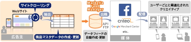 ※1:データフィードとは、企業が保有する各種商品データ(商品ID、商品名、価格、商品URL、商品説明文、商品画像、在庫など)のこと