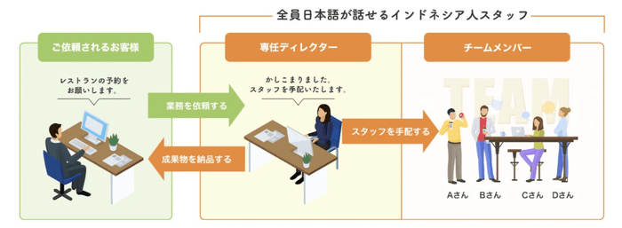 そこで、日本語を話せる優秀なインドネシア人スタッフが多数在籍するカケモチがインドネシア駐在員の助けになりたい、と本サービスをリリースいたしました。