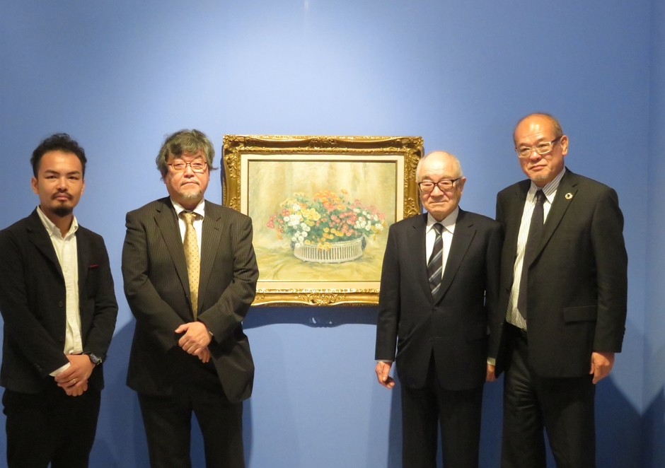 1月23日(木)13:00から行われたプレス内覧会には、関西経済同友会 企業所有美術品展実行委員会 委員長の浮舟邦彦、副委員長の坂上和典、総合監修の大阪大学 橋爪節也教授、対話型鑑賞プログラムを実施する京都造形芸術大学 アート・コミュニケーション研究センターの岡崎大輔副所長が登壇しました。