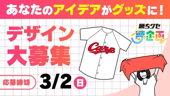 広島ホームテレビ(広島市中区)は、広島のスポーツをみなさんと盛り上げていくため『勝ちグセ夢企画』を立ち上げます。今回は「プロ野球編」、その第1弾としてカープ応援オリジナルグッズのデザインを大募集します。こんなユニフォームやあんなタオルで応援したいという ”あったらいいな” を叶えよう。