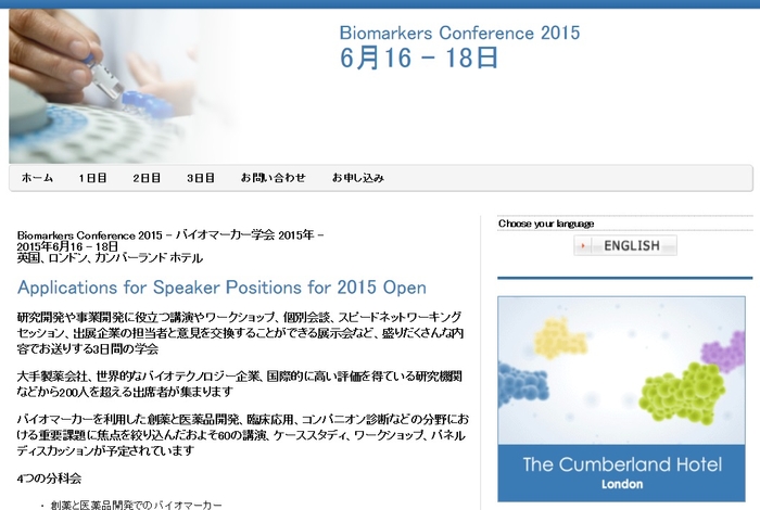 国際学会 「Biomarkers Conference 2015」(Appel Consulting Limited主催)の参加お申込み受付開始