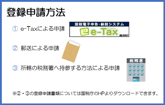 登録方法は簡単!e-taxによる申請もしくは郵送による申請