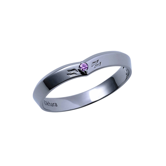 エヴァ8号機の頭部からデザインを取り込み、中央には機体メインカラーのストーンをセット。内側には機体番号を刻印。機体をイメージしたシルバーカラーで仕上げました。
