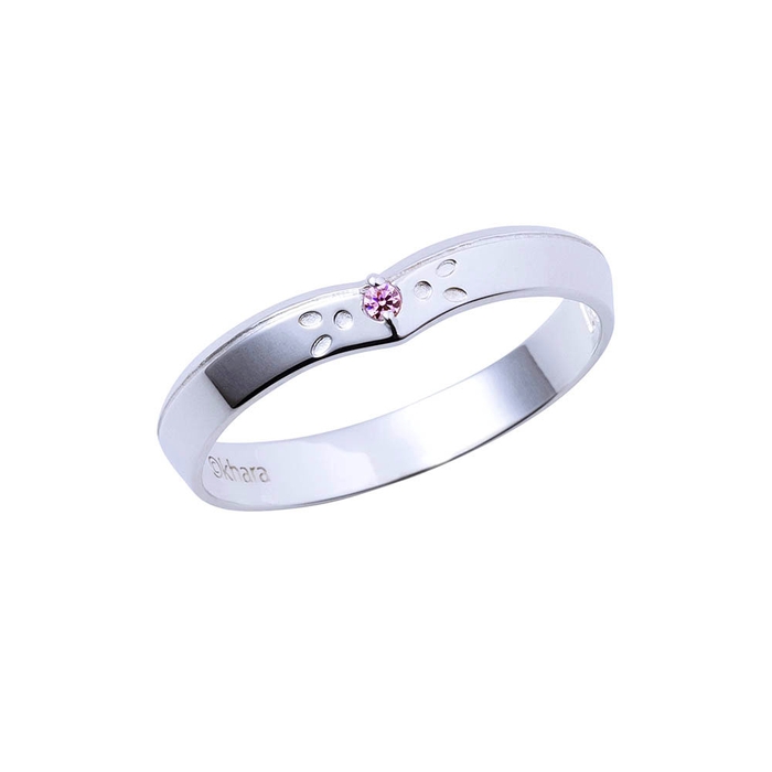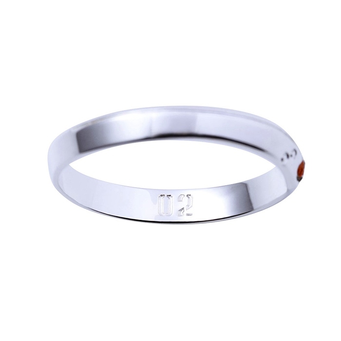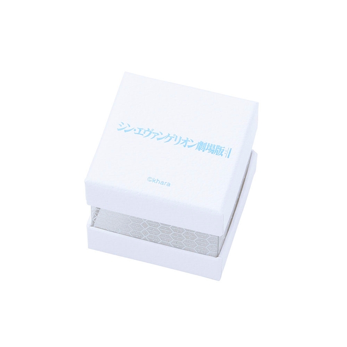 エヴァ2号機の頭部からデザインを取り込み、中央には機体メインカラーのストーンをセット。機体をイメージしたシルバーカラーで仕上げました。内側には機体番号を刻印。