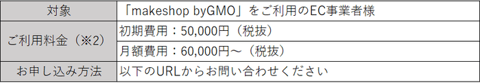 (※2)別途、「makeshop byGMO」のご利用料金がかかります。