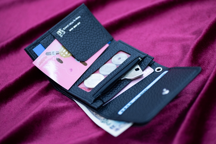 チャック:この財布はパッと開いたと同時に透明窓から中身を確認できて、指が届きやすいように浅く、たくさん貯まらないようにあえてちょっとしか入らないミニマムなコインポケットにしてます。スマホ決済が当たり前の時代、小銭入れの収納力はこの程度でいいんです。
