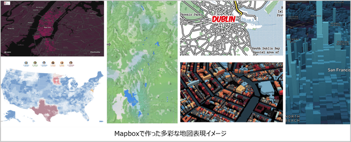 マップボックス社が2020年より日本で提供するデジタル地図開発プラットフォーム「Mapbox」は、カスタマイズが容易でカラーリングやフォントも自由にデザインすることができます。また、地図に載せた情報は3D表示やヒートマップなど多彩な表現ができ、さらに、軽量で描画に最適化されたベクターデータへ変換されるため、膨大なデータでも滑らかな表示が 可能です。そのため、ナビゲーションアプリや天気予報、企業のマーケティング分析、メタバースやゲームなど幅広いコンテンツに活用されています。