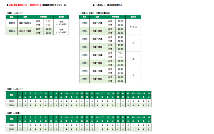 JALグループのLCCであるスプリング・ジャパン株式会社(以下:スプリング・ジャパン)は、本日15時より、2024年3月31日(日)から10月26日(土)までの成田=ハルビン線および成田=天津線の販売を開始します。