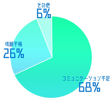 退塾率で悩んでいた学習塾様の協力のもとアンケートを実施したところ、退塾理由の約7割が「子供のことを相談する機会が少ない」「結局どんな学習をしているかよく分からない」といったコミュニケーション不足が要因のものでした。