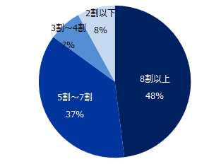 転職コンサルタントに「継続して採用活動を行なっている企業は全体の何割程度か」伺ったところ、 48%が「8割以上」、37%が「7割~5割」と回答。「半数以上の企業が採用を継続している」と回答した転職コンサルタントが85%を占めています。
