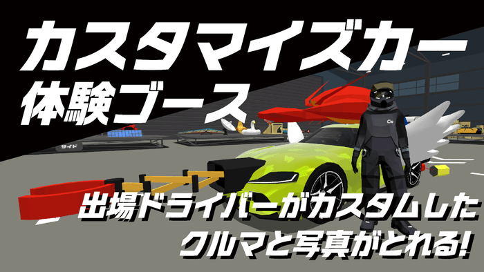 本ブースは、トヨタ自動車をはじめとする国内自動車メーカー8社(※)との共同プロジェクトである「爆創クラブ」の世界観を、レース開催地である鈴鹿サーキットでリアルに体験できる特別な企画です。
