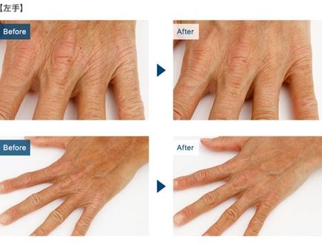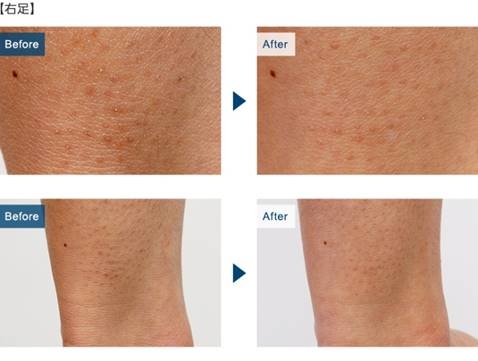 天然ミネラルウォーター「日田天領水」を経口摂取した摂取群の被検者について、手、腕、足、肩などの皮膚症状を目視診察したところ、一部の被検者に皮膚炎や皮膚の乾燥症状の改善が見られました。