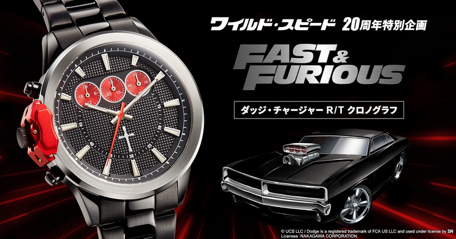『ワイルド・スピード』シリーズ20周年を記念して ドミニクの愛車 ダッジ・チャージャー R/Tをイメージした 3連インダイヤルのクロノグラフが登場!