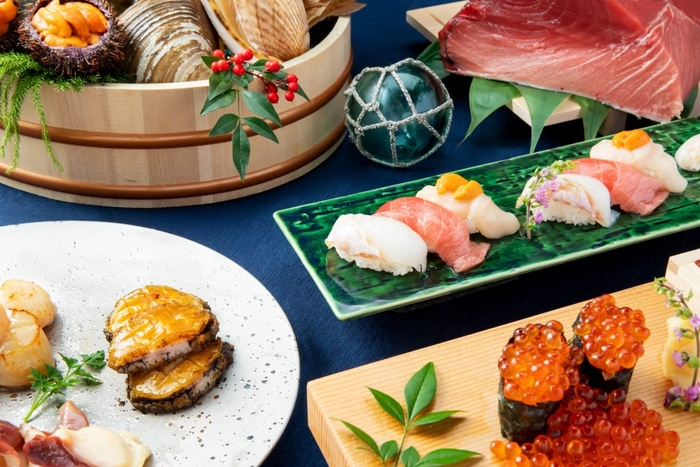 当フェアではビュッフェレストランのディナータイムにて、握り寿司3種盛り、寿司のこぼれいくら、貝3種の鉄板焼きを提供します。旬の海の幸を思う存分味わい尽くせるフェアです。