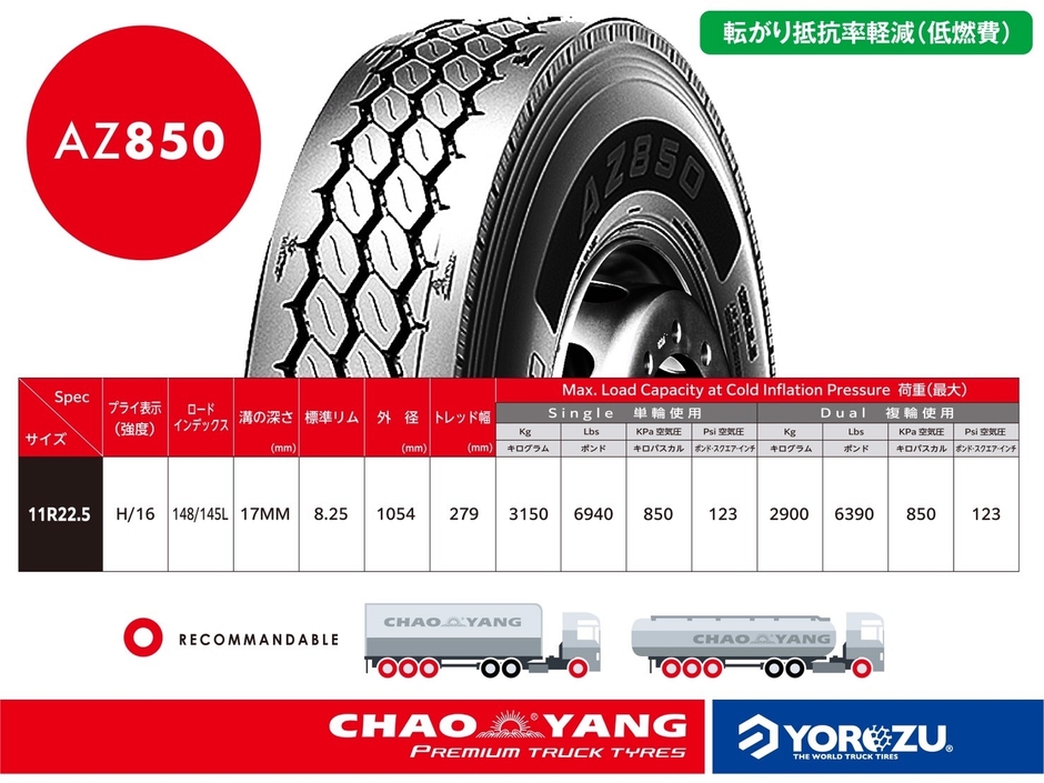 株式会社ヨロズ物流(本社:大阪府富田林市、代表取締役社長:新谷 剛)が日本総代理店を務めるチャオヤンジャパンは、全国200社を超える販売ネットワークを誇るCHAOYANGトラックタイヤシリーズに、新たに4つのモデルをラインナップいたしました。過酷な輸送現場において求められる“高い性能”と“優れたコストパフォーマンス”を両立し、現場の声に応える形でさらなる進化を遂げています。