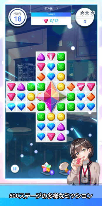 『シースルージュエル』はシンプルなルールでマッチ3パズルを楽しみながら、美少女と様々なシチュエーションでやり取りが楽しめる大人向けパズルゲームだ。