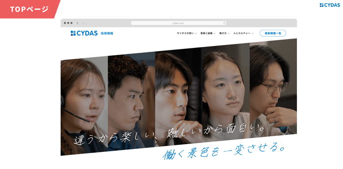 「働きがい」をつくる人事DX「CYDAS PEOPLE」を提供するサイダスは、タレントマネジメントシステム業界のパイオニアとして、様々な人事課題・組織課題と向き合ってきました。社員数が100名を超え拡大フェーズにある今、各職種において採用を強化すべく本リニューアルを実施。より社風や働く環境、人々の魅力が伝わるサイトへと生まれ変わりました。