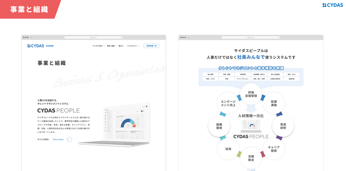 ■サイダスの提供するサービスがわかる「事業と組織」ページ