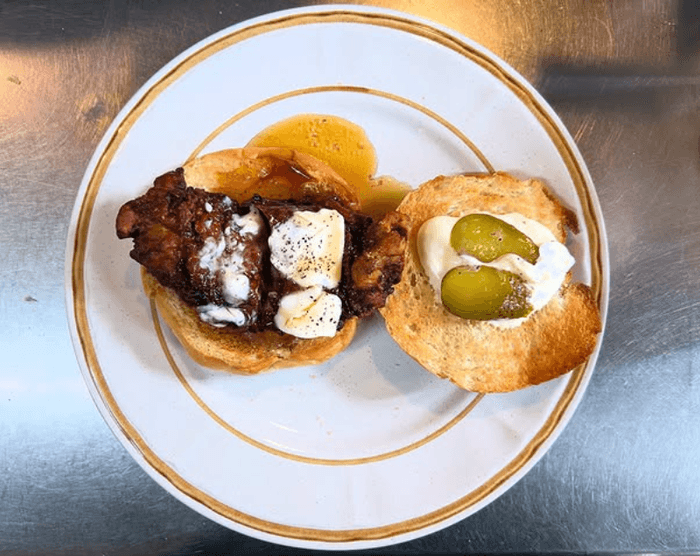 「甘じょっぱい」味わいがクセになる、メープルシロップと発酵バターを使用したフライドチキンバーガー。香ばしい衣とジューシーなチキン、そこにメープルシロップの甘みと発酵バターのコクが合わさることで、一度食べたら忘れられない一品に。
