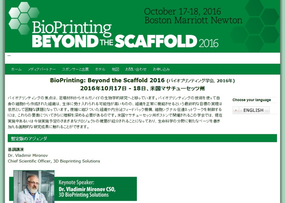 学会:「BioPrinting: Beyond the Scaffold 2016 -バイオプリンティング学会 2016年」
