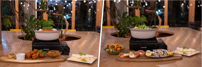「TTT Winter Garden」では、寒い冬にぴったりな選べる鍋プランをご用意しました。じっくり煮込んだスンドゥブチゲ風と、まろやかでコクのある豆乳鶏白湯鍋の2種類からお選びいただけます。鍋料理には前菜や揚げ物などの一品料理もセットされ、心も体も温まるひとときをお届けします。
