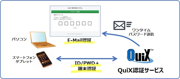 ベーステクノロジー株式会社(本社:東京都千代田区、代表取締役:今城忠浩、以下ベーステクノロジー)は、ベーステクノロジーが提供するクラウド認証サービス『QuiX認証サービス』の認証要素に、E-Mail認証を追加し、2022年3月1日よりサービス提供を開始することをお知らせいたします。