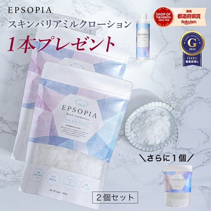 『エプソピア』は瀬戸内海のにがり100%を使用した日本製のバスソルトで、楽天バス用品ランキングにて度々1位を獲得(※1)した人気浴用入浴料ブランドです。