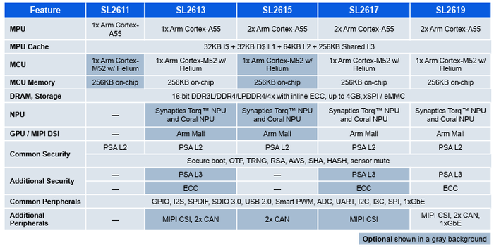 Astra SL2610プロセッサーは、将来を見据えたNPUアーキテクチャーとオープンソースコンパイラーを組み合わせた、新たなSynaptics Torq™ Edge AIプラットフォームを搭載し、IoT AIアプリケーション開発における新たなスタンダードを確立します。Torqは、GoogleのRISC-VベースCoral NPUを動的演算子サポートとともに初めて量産展開し、将来を見据えたエッジAI設計を実現します。オープンソースのIREE/MLIRコンパイラーとランタイムを活用し、開発者中心のアプローチを体現しています。SL2610製品ラインは、Arm® Cortex®-A55、Cortex®-M52 with Helium™、Mali™ GPUテクノロジーを統合し、これらのプロセッサーは包括的かつ多層的なアプローチでシリコンに直接セキュリティを組み込み、変更不可能な信頼の基点(IRT)、サイバー攻撃やマルウェア等の不正アクセスなどのセキュリティへの脅威検出、そして高負荷なAIワークロードを管理するアプリケーション暗号コプロセッサーを実現します。