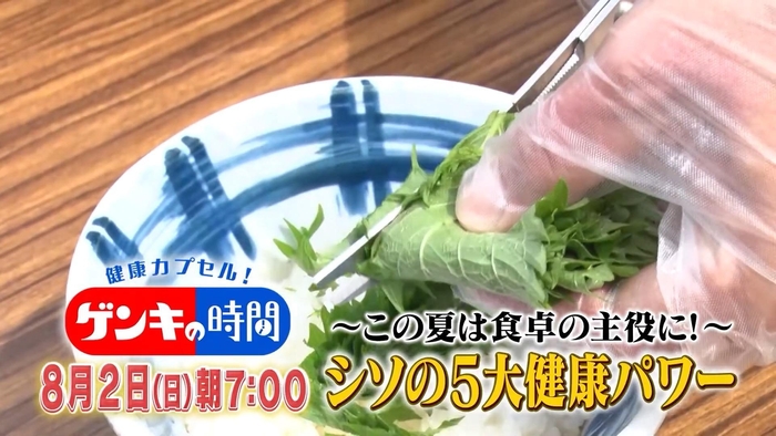 整腸、美肌、認知症予防、血流改善、がん予防に効果が期待できる!?小さな一枚に秘められた「シソ5大健康パワー」とその理想の食べ方をご紹介!8月2日(日)あさ7:00放送『健康カプセル!ゲンキの時間』