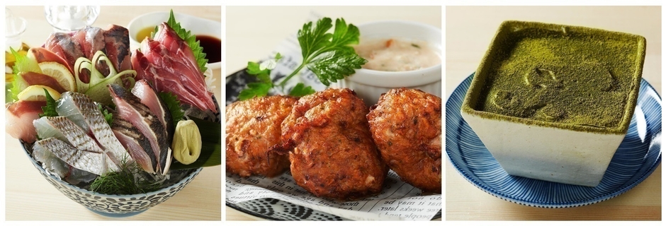 相模灘に面した伊豆半島の東岸中部に位置する伊東市は、伊豆最大の漁港・伊東港ほか数々の漁港をもち、鮮魚や干物など海の幸に恵まれています。「イトゥバル」の料理メニューは、サバやイサキ、アジ、するめいかなど、伊東産の新鮮魚介を中心とした漁港直送の鮮魚や貝類、野菜、イカやサバを野菜とすり身にして揚げたご当地料理「ちんちん揚げ」(揚げる際の音が由来)や、茶葉の形を整える工程がないことにより渋みを抑えて本来の味を引き出した「ぐり茶」を使ったティラミス、伊東産のフルーツを使ったサングリアやサワー、魚介に合うスパークリングや白ワインなど、<伊東市名産の食材×イタリアン>を存分に楽しんでいただけます。