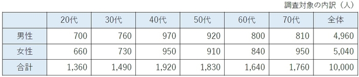 - 調査対象:全国20代〜70代の男⼥10,000名