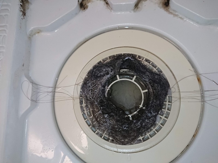 髪の毛はある程度溶けたら、排水口の中に入れちゃってください。