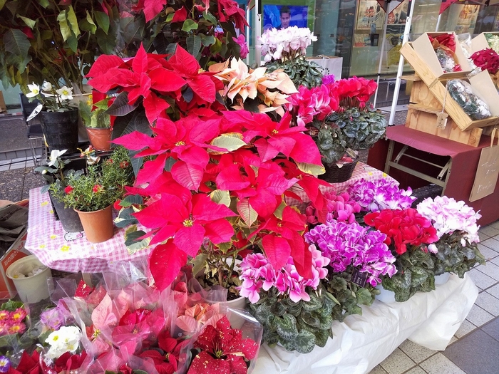 お花専門店の「ニュー花矢」さんが、クリスマスらしい商品を取り揃えてお待ちしてます。クリスマスリースや生のモミ枝、ミニリンゴ、松ぼっくり、白枝、綿の木、お部屋で手軽に楽しめるサイズの鉢植えツリーも。産地直送のポインセチアはサイズも豊富にご用意しています。