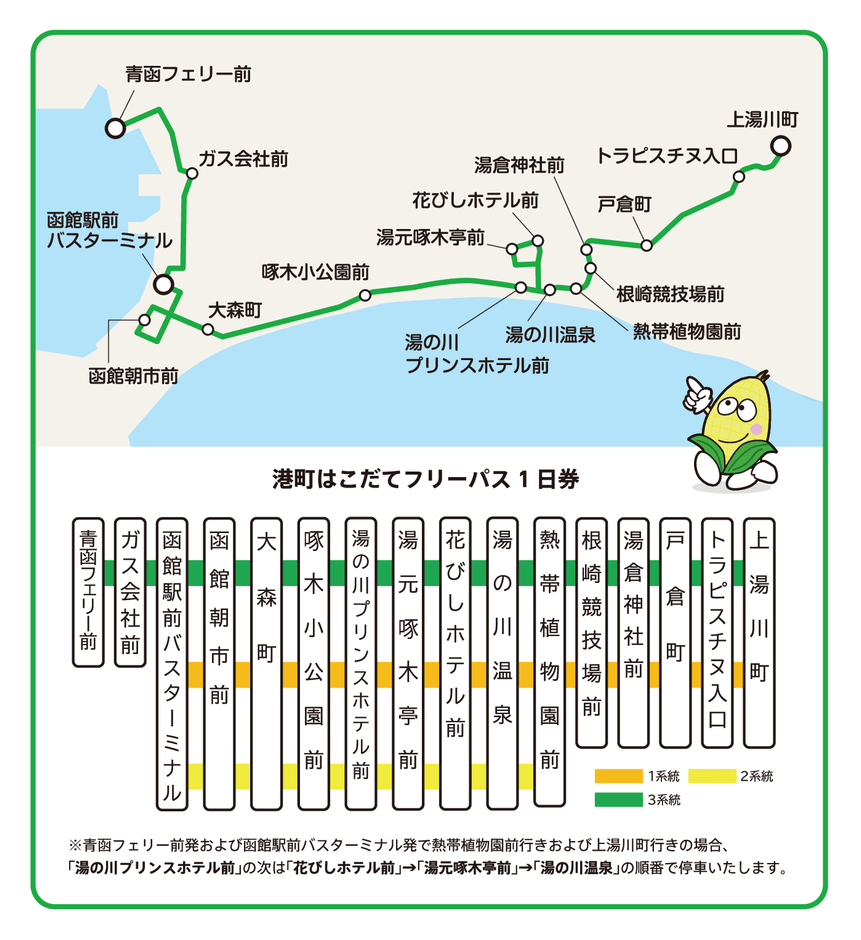 モバイルチケット限定で 「港町はこだてフリーパス1日券」を販売開始  青函フェリー前⇔上湯川町間を走る路線バス1日乗車券
