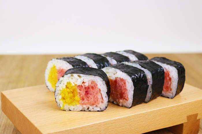 有明産の風味の良い海苔が、鮪とたくあんのおいしさをさらに引き立てます。