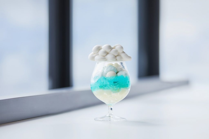 メインデッキに位置する、屋内カフェ「雲Cafe」では、6月1日より、2023年シーズン限定のスイーツを提供します。提供するのは、トマムで見られる雲海と青空をモチーフにした「雲パフェ」です。青空をイメージしたジュレに、雲をイメージしたファーム星野(*)のヨーグルトを使用するクリームやクリームチーズ、生クリームを浮かべ、グラスのふちには雲ソフトを添えます。柑橘のジュレとヨーグルトクリームで軽く爽やかな味わいのパフェに仕上げました。パフェを堪能しながら景色を眺めたり、屋外のソファでくつろいだりと雲海を待つ間も楽しく過ごせます。